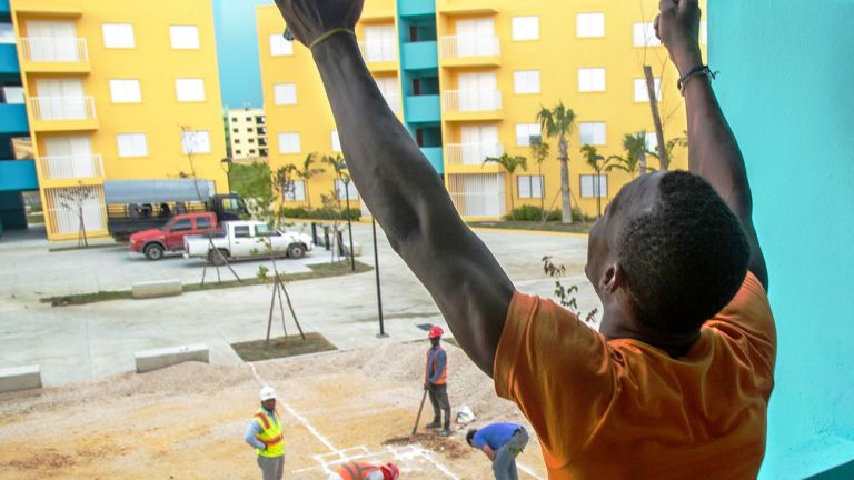 Con lo que paga de alquiler, compra su casa en Ciudad Juan Bosch. Son 6,800 pesos mensuales por 20 años. "Mi casa mía", comprada poquito a poco, como se puede, en toda una señora ciudad, que tendrá de todo.