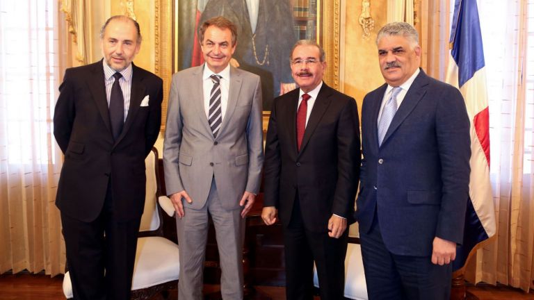 El presidente Danilo Medina recibió en su despacho del Palacio Nacional al ex presidente del Gobierno de España, José Luis Rodríguez Zapatero, con quien intercambió sobre diversos temas de interés común para los dos países.