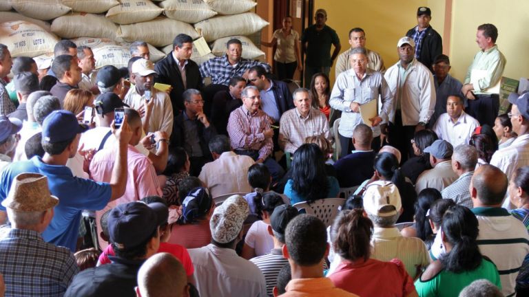 MAMÁ TINGÓ.-Yamasá.- El presidente Danilo Medina concedió este domingo créditos para los productores de cacao y pimienta de la comunidad Mamá Tingó, de Yamasá.