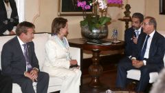 | James W. Brewster, Nancy Pelosi y el presidente Danilo Medina, durante el encuentro. |
