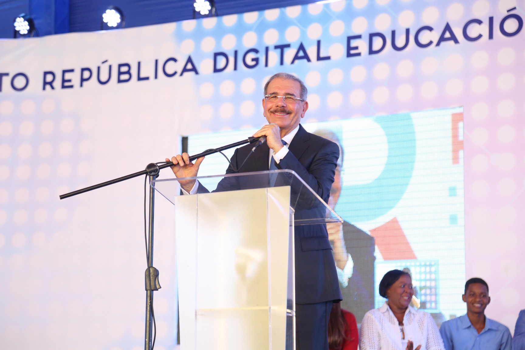 6 Diciembre 2017 | 17:12El presidente Danilo Medina expresó que el Gobierno está dando los pasos para elevar la calidad educativa. El gobernante habló durante el lanzamiento del programa República Digital Educación.