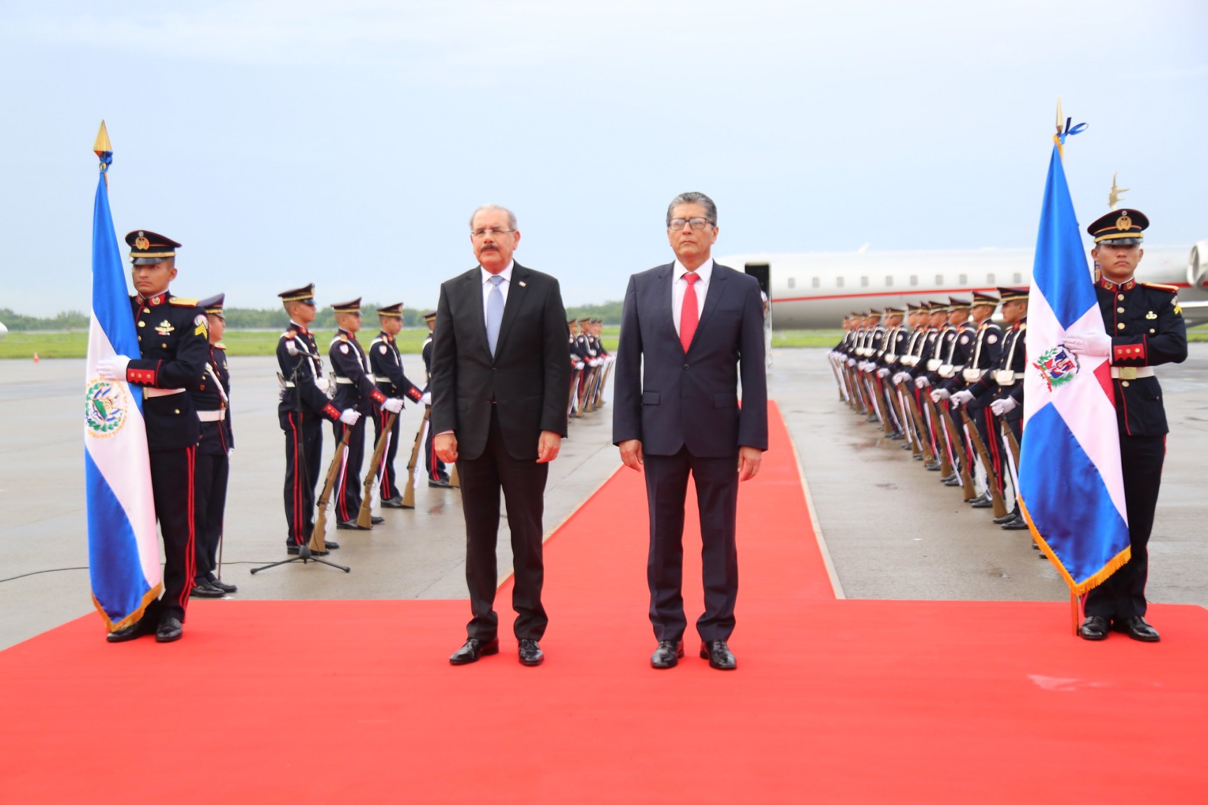 La llegada del jefe de Estado dominicano se produjo por el Aeropuerto Internacional de El Salvador “San Oscar Arnulfo Romero y Galdámez”, donde fue recibido, con los honores militares propios de su investidura, por el viceministro de Relaciones Exteriores, Integración y Promoción Económica, Jaime Miranda; y el embajador dominicano en esta nación centroamericana, Fernando Antonio Pérez.
