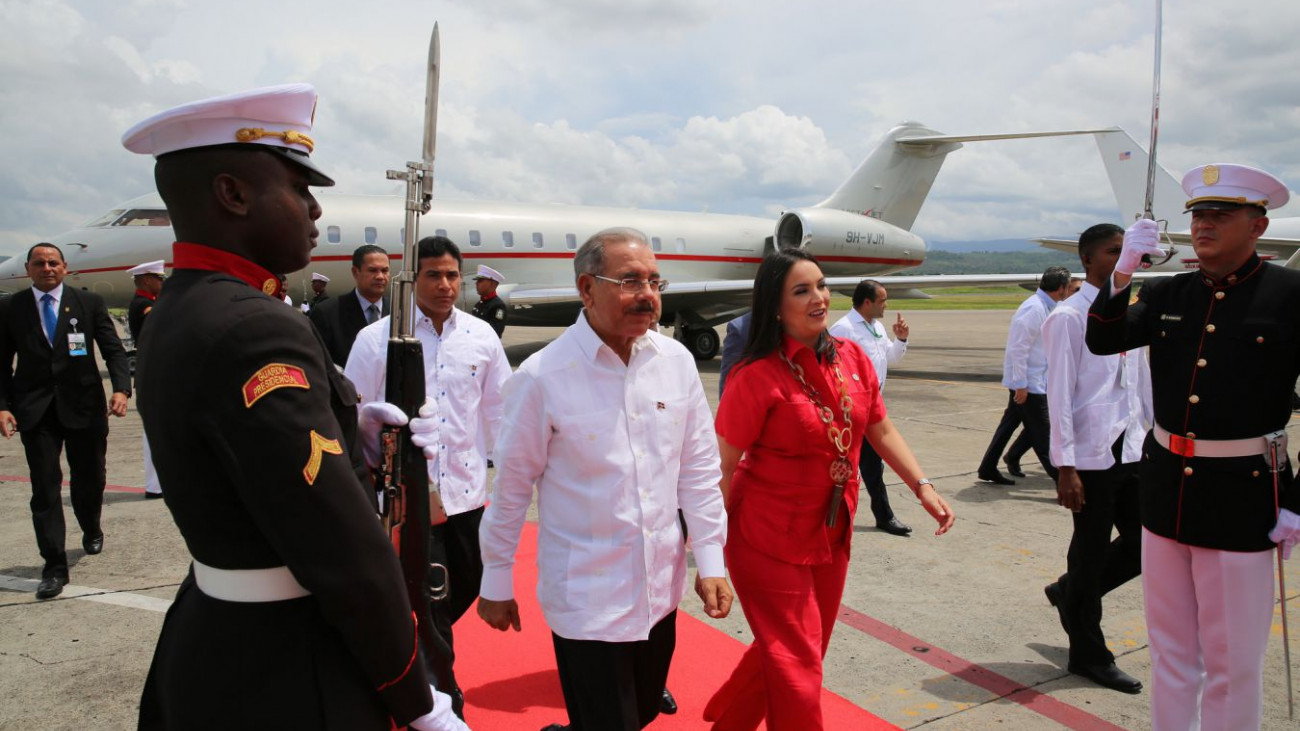 El gobernante dominicano arribó por el aeropuerto internacional de Tocumen a las 11:25 de la mañana, hora local, donde fue recibido por vicecanciller panameña María Luisa Navarro y por el embajador dominicano, César Medina.