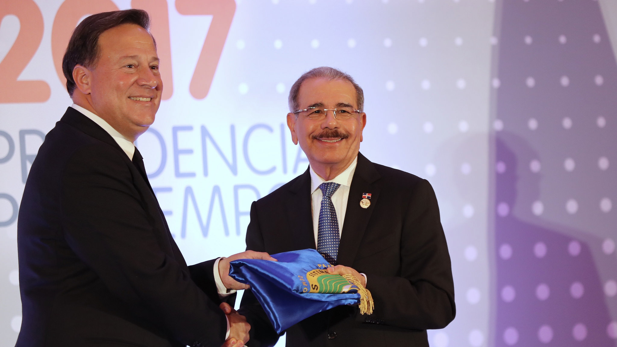 Le entregó su homólogo panameño Juan Carlos Varela. Varela confió en la buena labor que realizará Danilo Medina al frente del organismo. El traspaso se hará efectivo en enero.