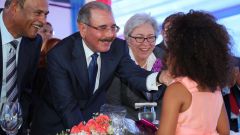 | La niña Johanna Taveras entregó flores al presidente Danilo Medina. |