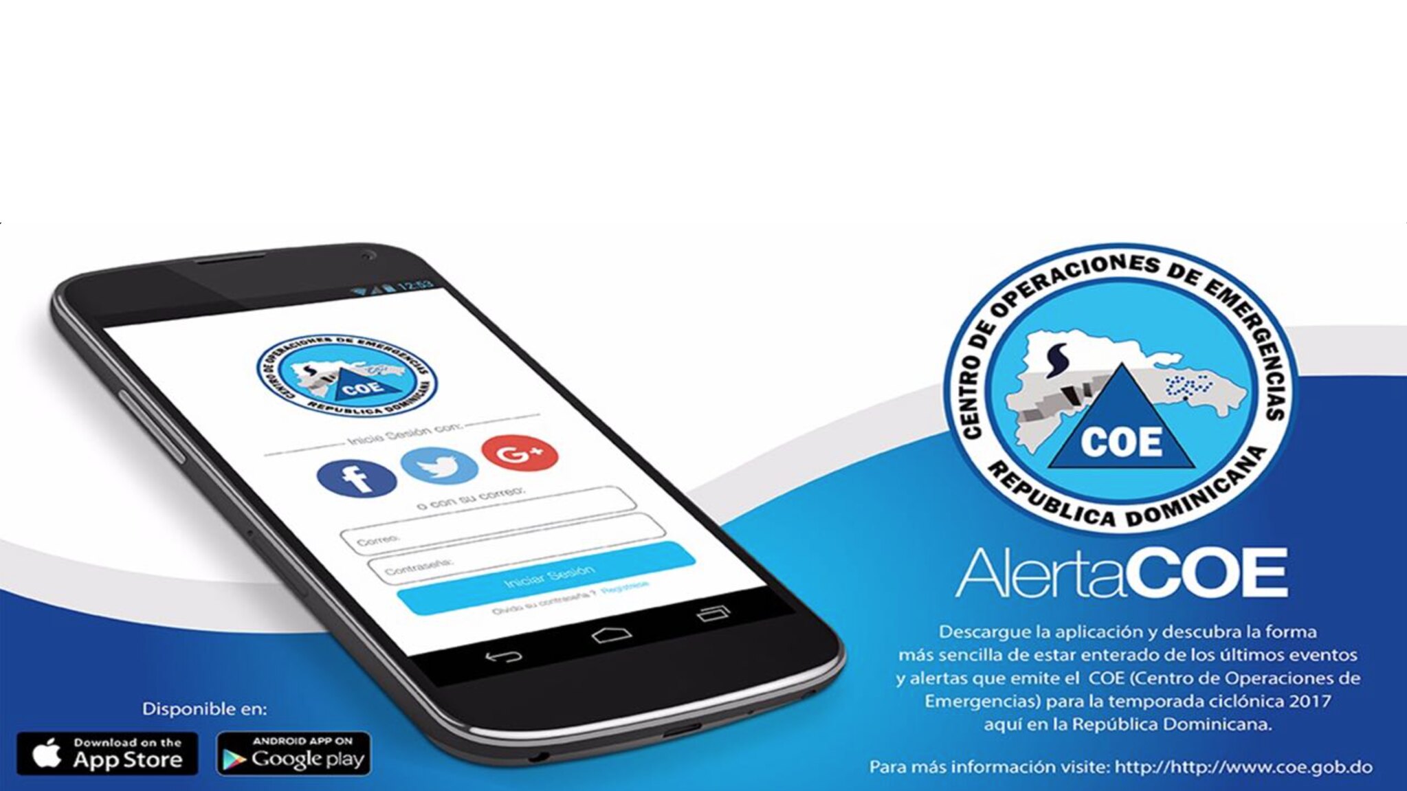1 Junio 2017 | 17:06El Centro de Operaciones de Emergencias (COE) presentó la aplicación telefónica Alerta COE. La plataforma tecnológica es para difundir informaciones de eventos meteorológicos por teléfonos inteligentes.