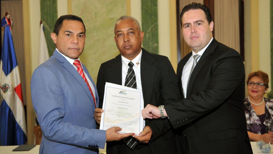 Durante un acto encabezado este lunes por el director general del Instituto Nacional de Formación Técnico Profesional (INFOTEP), Rafael Ovalles y el director de Tecnología del Ministerio Administrativo de la Presidencia, Francis Coste, en el Salón Verde del Palacio Nacional, se entregaron los primeros certificados dentro de dicho plan.