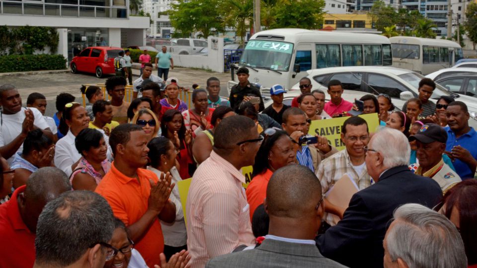 Isa Conde habló durante 23 minutos con los representantes de Pedernales en el parqueo del Ministerio de Energía y Minas. “No les recibo en mi oficina porque es muy pequeña y no caben todos, pero estoy para escucharles porque ustedes son quienes me pagan.”