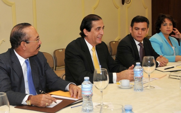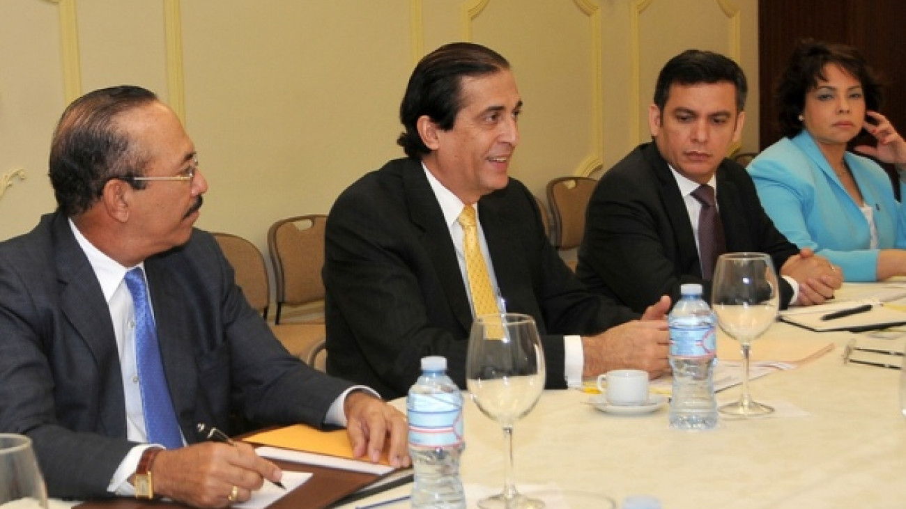 | Los ministros Gustavo Montalvo y Luis Ramón Rodríguez, acompañados del viceministro de la Presidencia, Luis Henry Molina y de la directora general de Compras y Contrataciones del Estado, Yokasta Guzmán. |