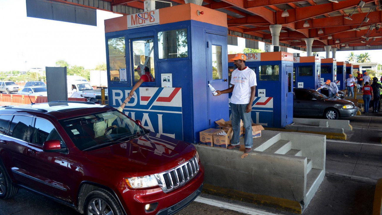 Empleados de Obras Públicas se apostaron en las diferentes estaciones de peaje para entregar volantes y botellas de cloro, al tiempo que exhortaban a los conductores a combatir el mosquito Aedes Aegypti, transmisor del dengue.