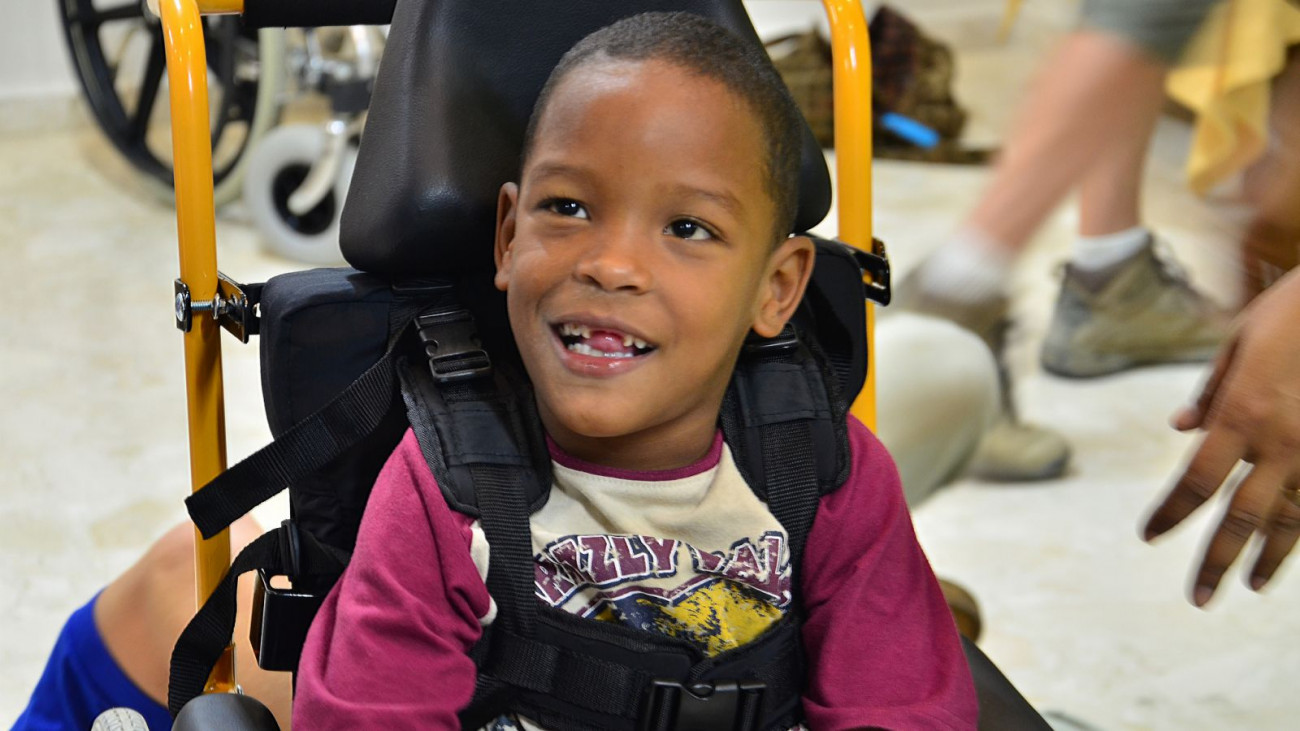 Niños y niñas del CAID reciben sillas de ruedas especiales