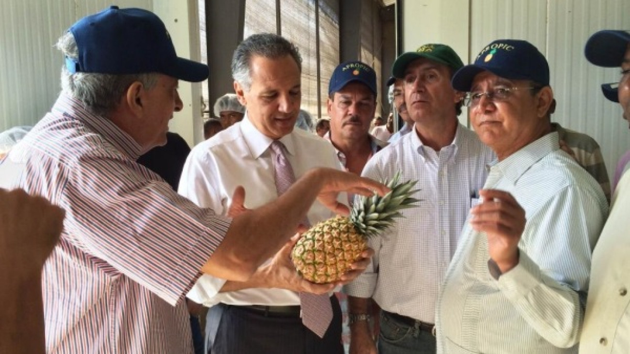Fabio Giuntoli y Mario Velásquez mostraron al funcionario los avances del proyecto de renovación de este cultivo desde que, en diciembre de 2012, el Primer Mandatario visitara a los productores de piña de Cevicos y dispusiera la adquisición de 10 millones de hijuelos de óptima calidad en Costa Rica, por un valor de 80 millones de pesos para apoyarlos en sus deseos de incrementar y mejorar la producción para competir en el mercado internacional.
