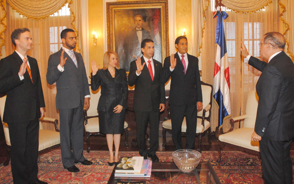 El presidente Danilo Medina juramentó este martes en su despacho del Palacio Nacional, a los integrantes de la Comisión Reguladora de Prácticas Desleales en el Comercio y sobre Medidas de Salvaguardia.