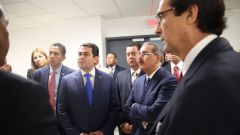 Ambos presidentes llegaron juntos a la sede del 911 donde el ministro de la Presidencia, Gustavo Montalvo, fue el encargado de mostrar el funcionamiento de las instalaciones, así como los detalles del sistema y el proceso de formación que siguió el personal antes de la inauguración del servicio.